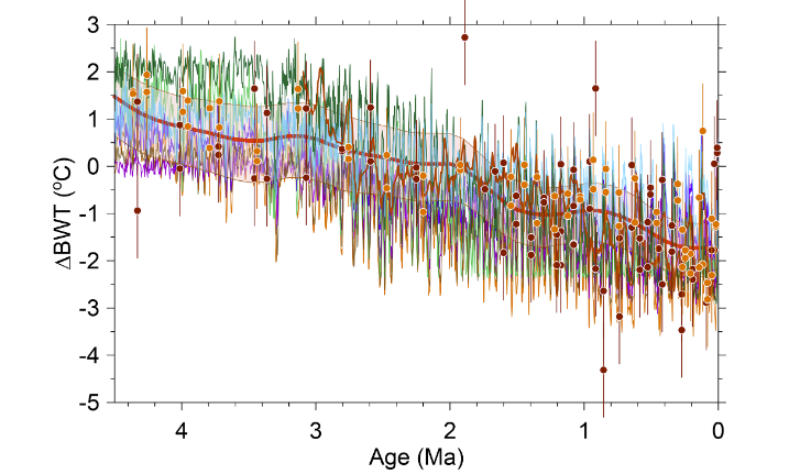 According to the quoted paper, we are talking of "Proxy-based reconstructions of changes in bottom water temperature ".